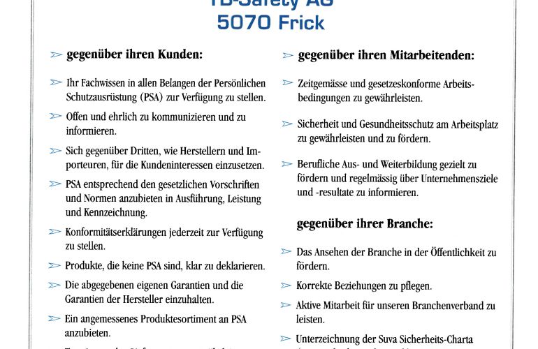 Als Aktivmitglied der Swiss Safety handeln wir nach deren Kodex.